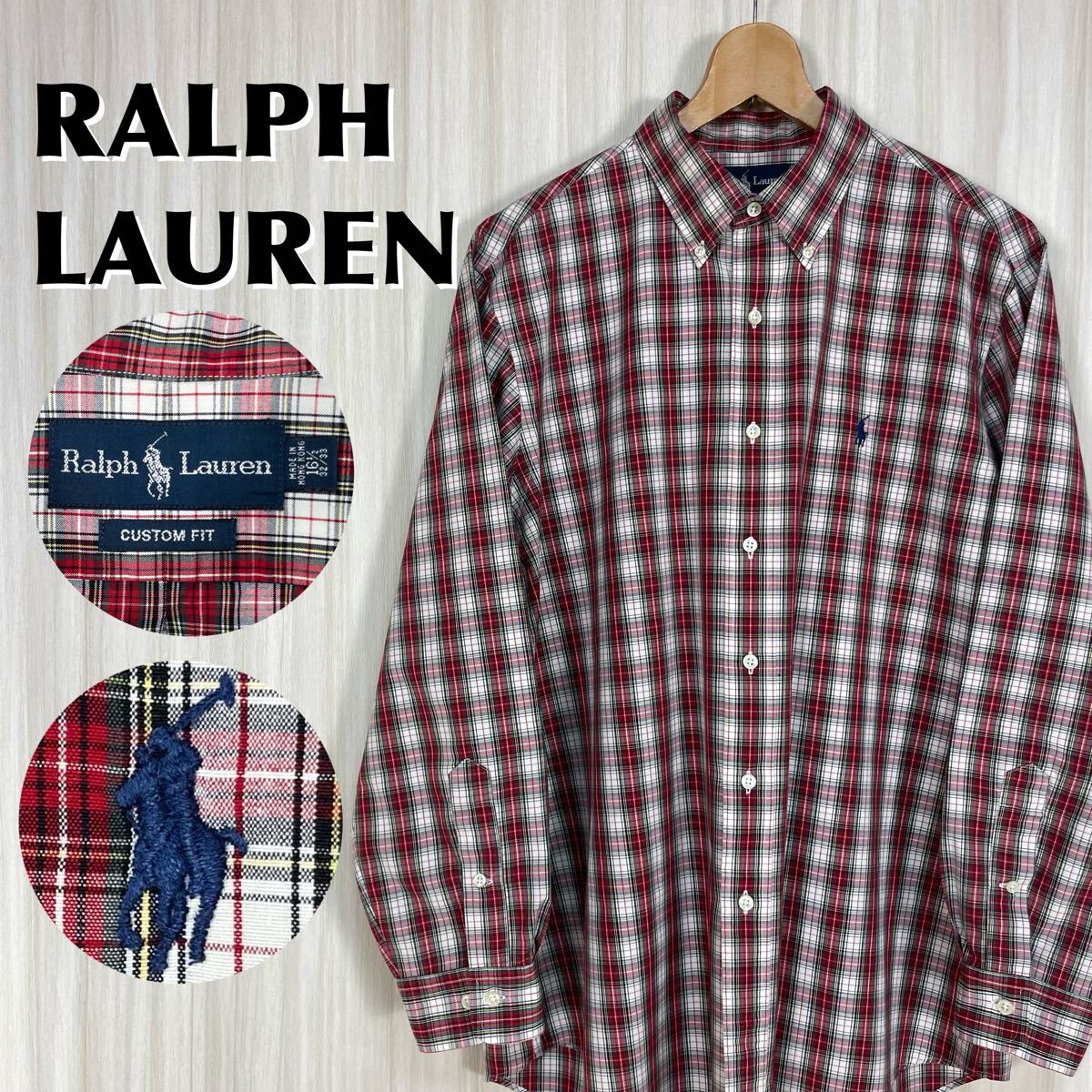 > ☆人気ブランド☆ラルフローレン 刺繍ポニー タータンチェック ボタンダウン 長袖シャツ BDシャツ サイズ16.5 マルチカラー アメカジ 古着
