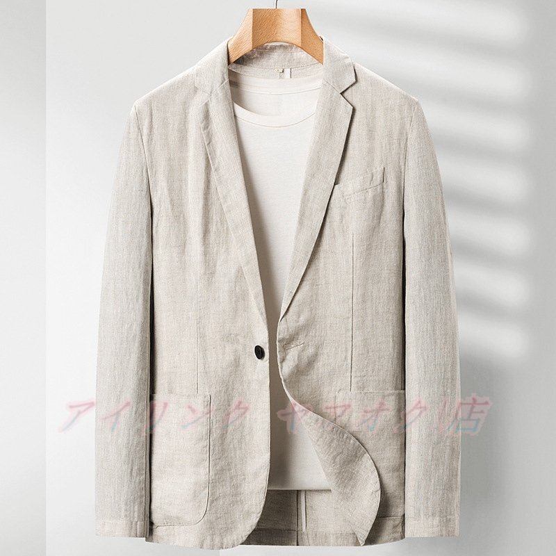 > ☆新品入手困難 リネン テーラードジャケット 最高級 麻100% メンズ ブレザー 薄手スーツ 紳士服 センターベンツ 春夏アウター ベージュ