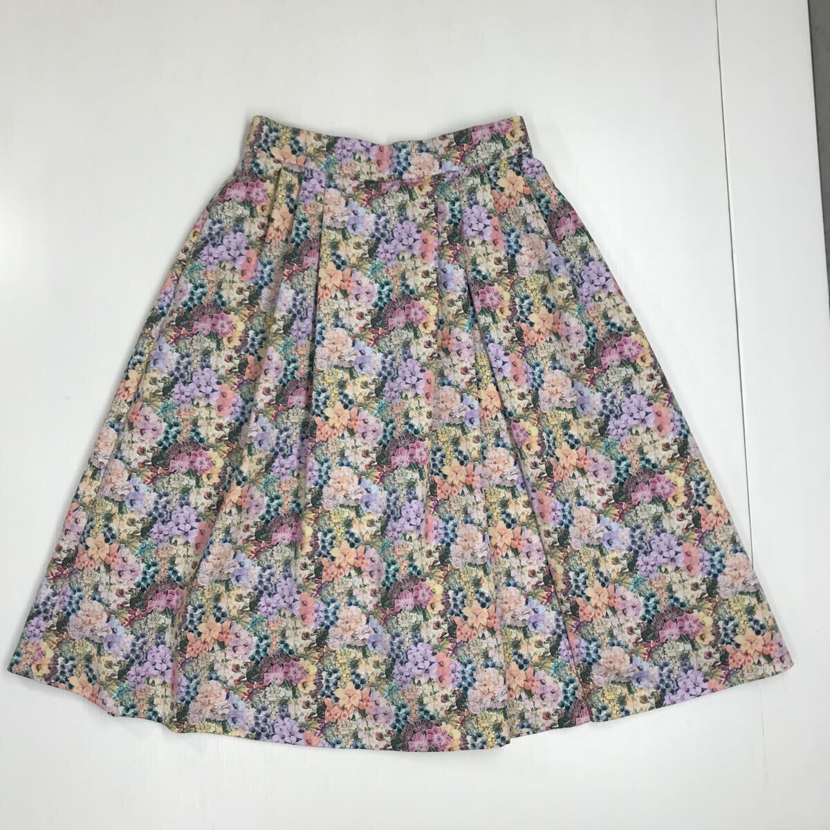 - KUMIKYOKU クミキョク タックスカート 花柄 総柄 ひざ丈 プリーツ サイズ2 410-77a