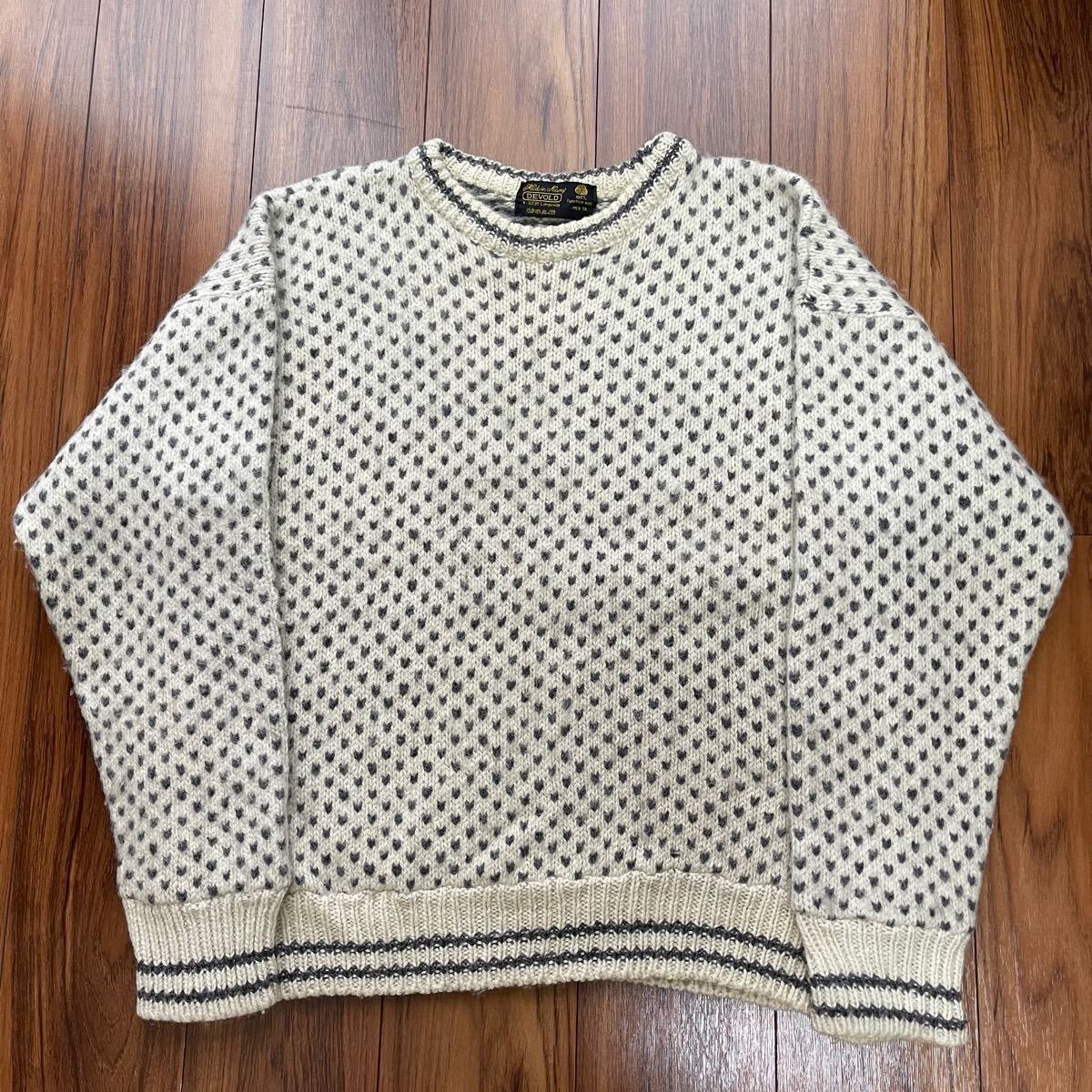 - 90s DEVOLD バーズアイ ニット セーター 総柄 58 ノルウェー製 ウール 白 大きいサイズ