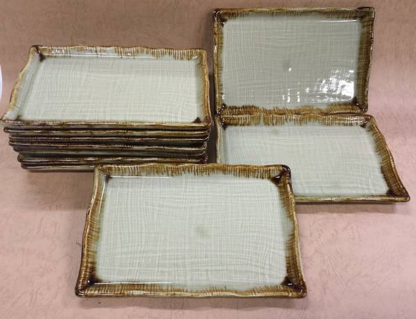 - 新品10枚1組 9組90枚迄可 布目 瀬戸焼 肴皿 刺身皿 角皿 黄瀬戸 白陶土 デッドストック良品