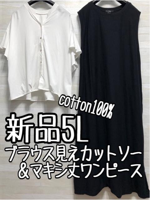 - 新品☆5L♪白系きれいめカットソー&黒系マキシ丈ワンピース☆f191