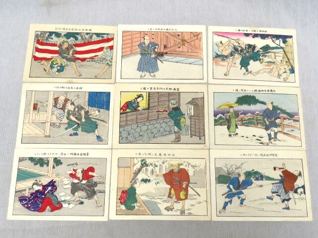 - 木版画まとめて9枚 赤穂浪士 大石内蔵之助 武林唯七 村松三太夫 大高源五など 時代