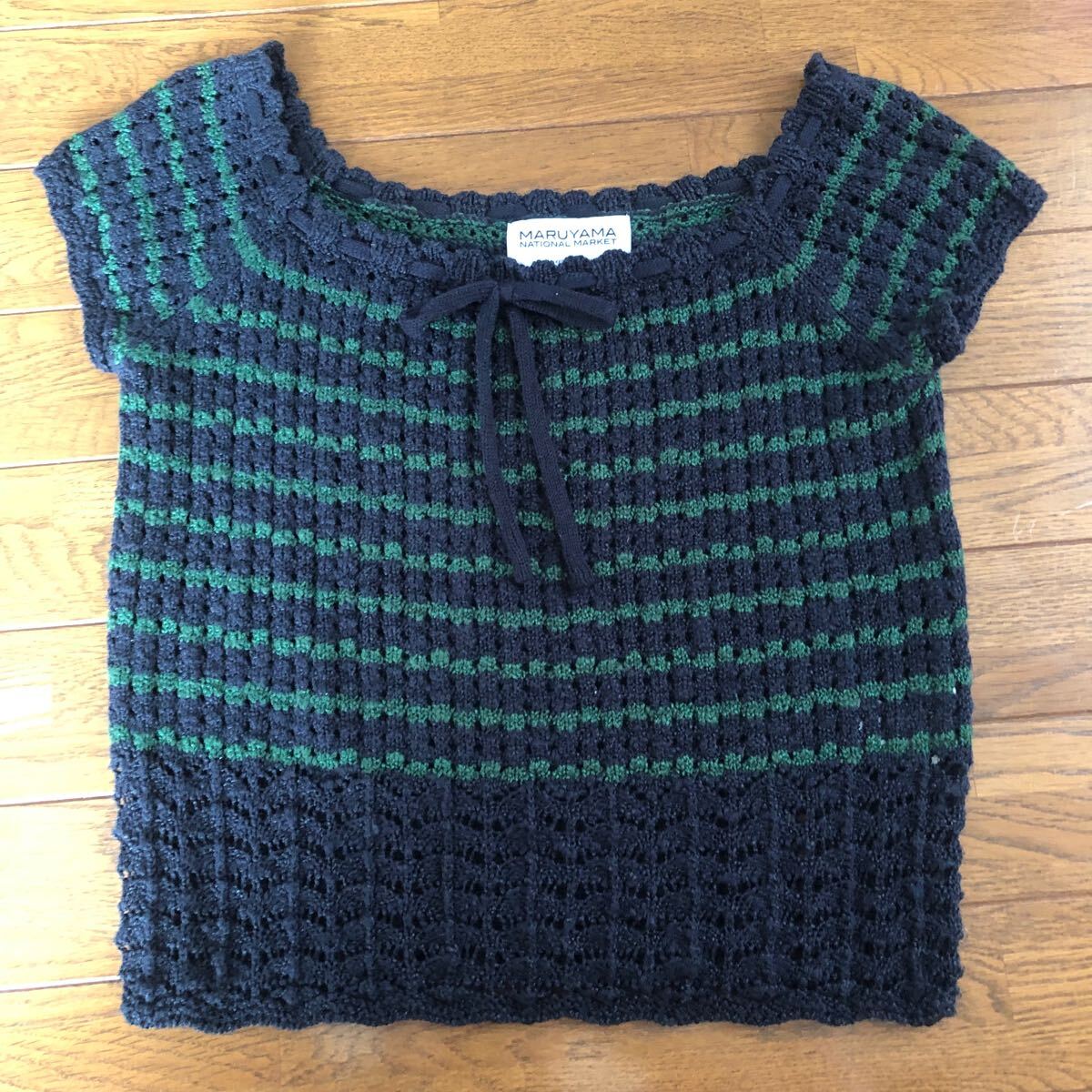 - GU Keita Maruyama 半袖 S カットソー 紺色 グリーン ショート丈 レディース