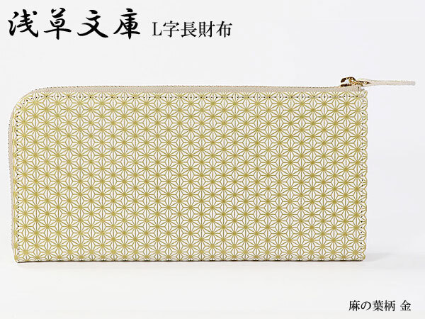- 財布 L字長財布 麻の葉柄 長財布 浅草文庫 金 小銭入れあり 日本製 友禅染 本革 江戸小紋 いろどりシリーズ レディース メンズ