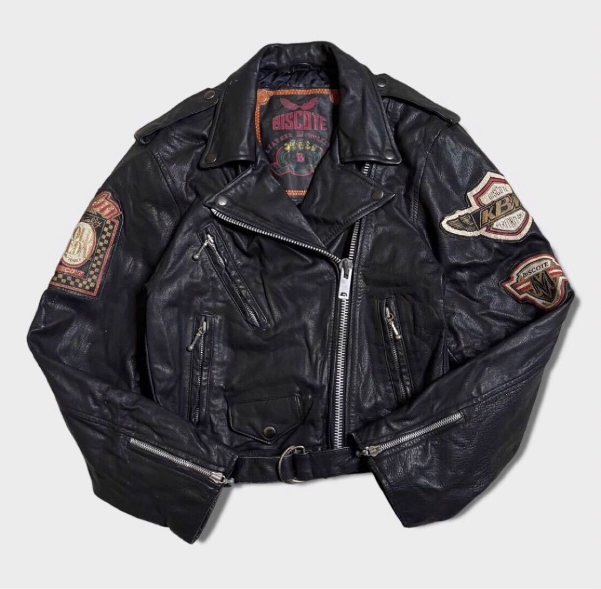 - BISCOTE レザージャケット ダブルライダース ワッペン 80~90s 黒