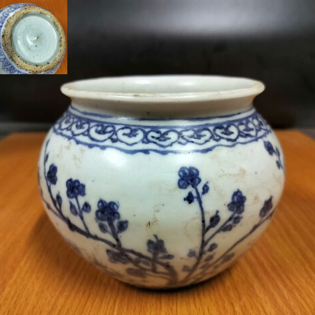 > ▼渡鶴羽▼P527朝鮮珍品旧蔵 朝鮮美術 高麗磁 朝鮮古陶磁器 古高麗 李朝時代 李朝白磁青花梅竹紋罐