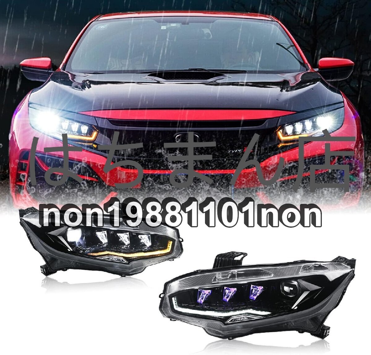 - ホンダ シビック ヘッドライト第10世代LED FK7 FK8 タイプ R FC1 流れるウインカーFor Honda Civic2016- 2021 (NEW ヘッドライトT1) ストア