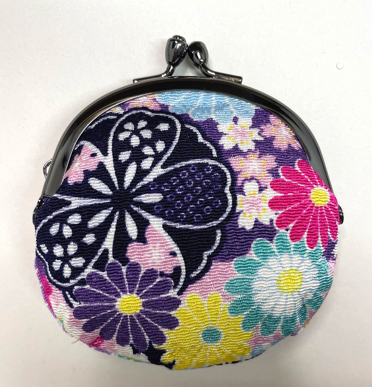 - 日本製 がま口小銭入れ 2.5丸 縮緬古裂 ちりめん マルチカラー 花柄