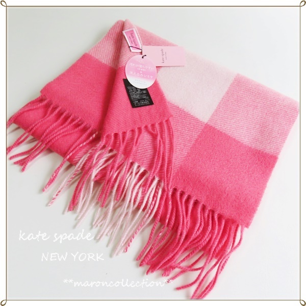 > 未使用 * ケイトスペード *上質 カシミヤ 100% マフラー ストール * 手洗いOK * ピンク チェック