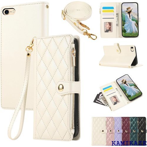 - iPhone SE 第3世代 用 ケース 手帳型 通用 置き機能 シンプル お洒落 スマホケース パールホワイト 3194