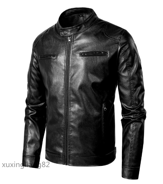 - 新作 ライダースジャケットPUレザー メンズ ブルゾン アウター バイクウエア アメカジ 防寒防風 黒/L