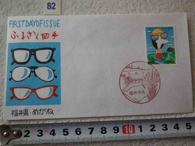- FDC ふるさと切手 めがね・福井 1貼1消 解説書有 松屋版●82●同梱大歓迎