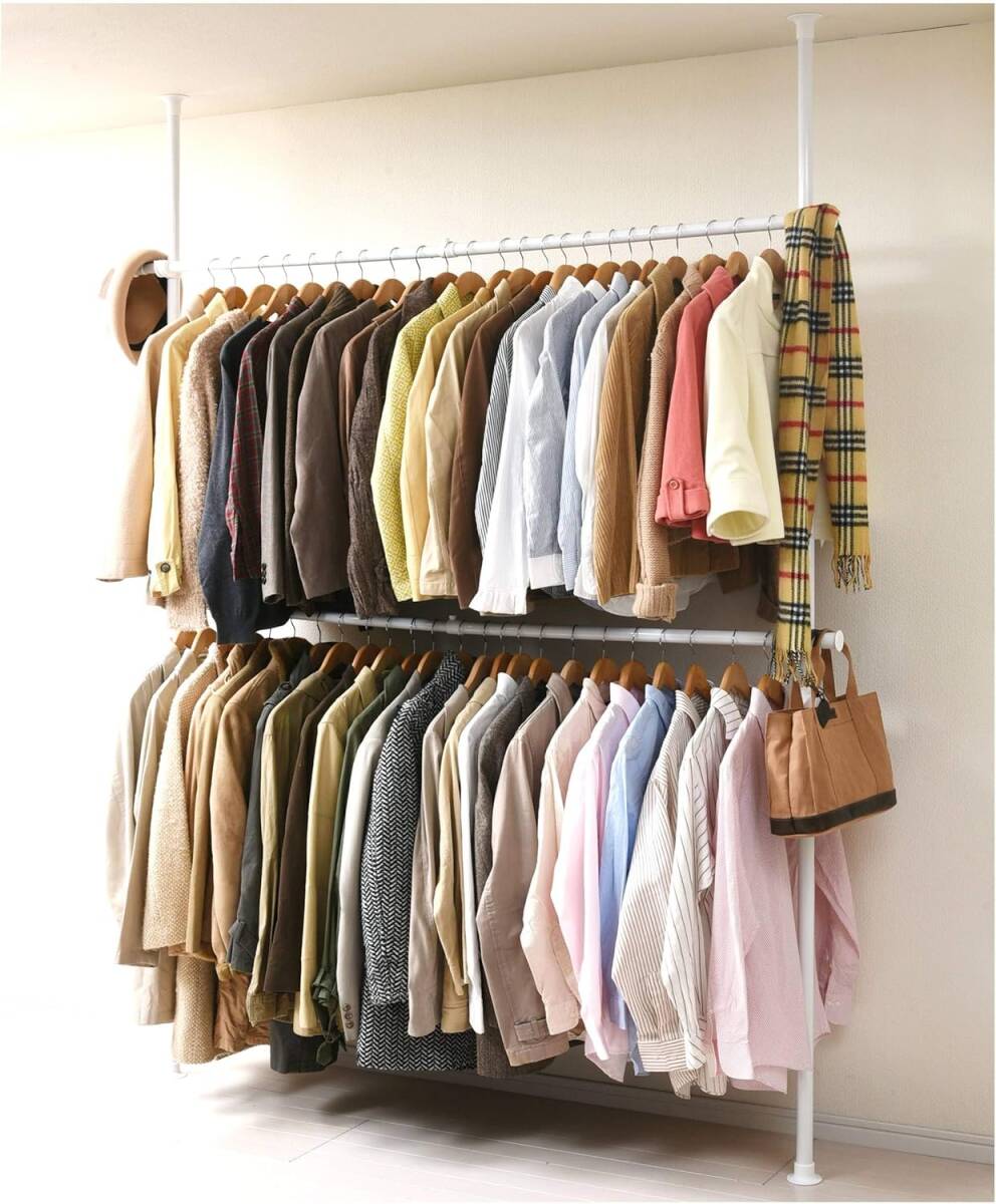 - 【新品】 山善(YAMAZEN) 突っ張りポールハンガーラック(ダブル) ホワイト WJ-775
