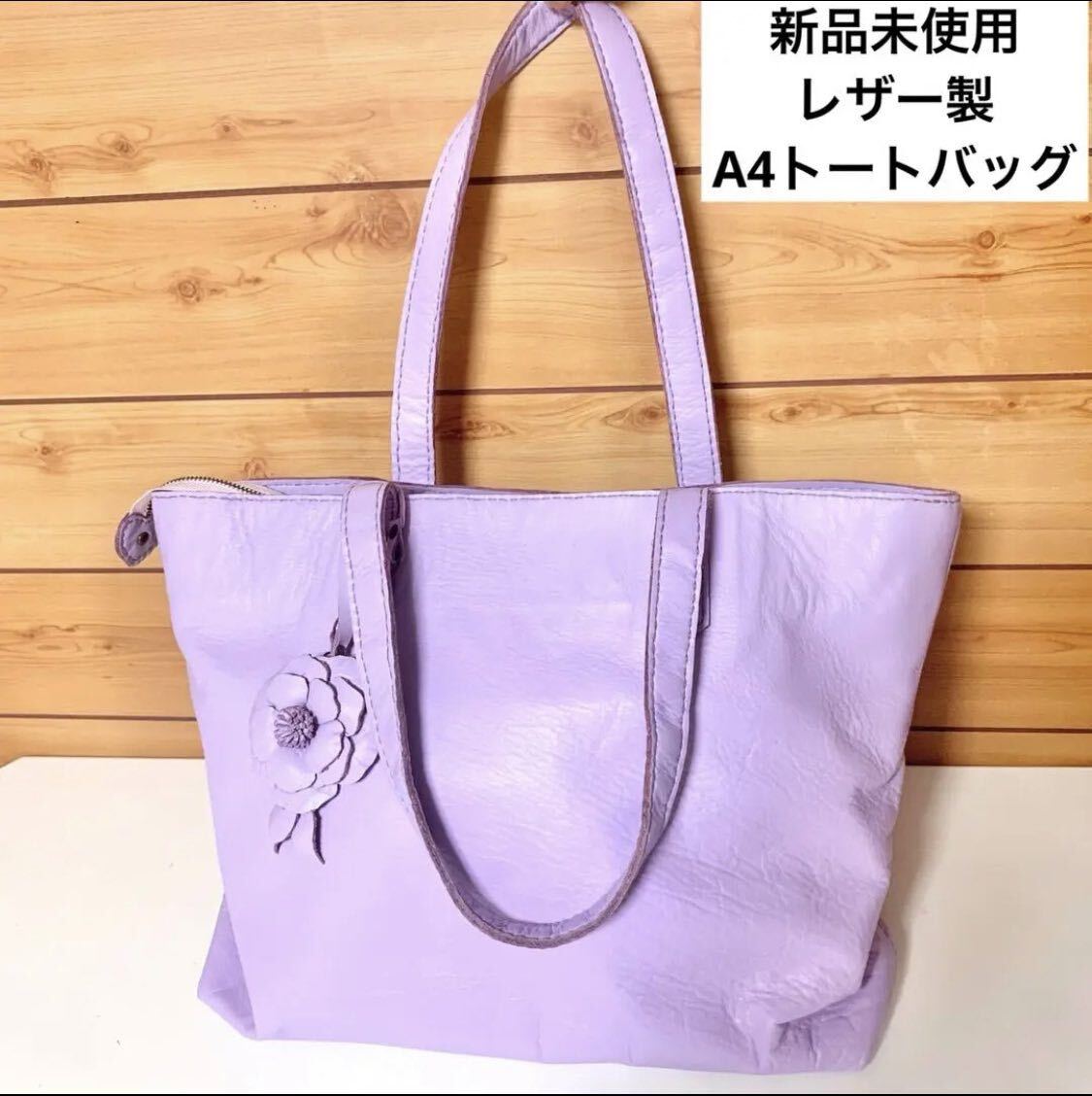 - 匿名配送 A4可 牛本革シンプルトートバッグ ラベンダー 薄紫 ソフトレザー スムースレザー ライトパープル 通勤バッグ