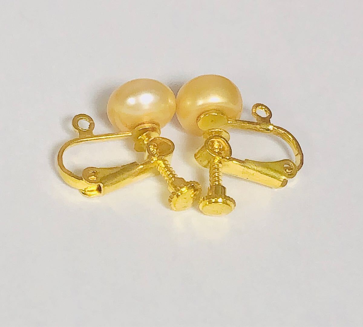 - 可愛い♪天然本真珠/ゴールドパールイヤリング(9mm)色染め 真珠イヤリング♪6月の誕生石♪金具ゴールド仕上げ♪
