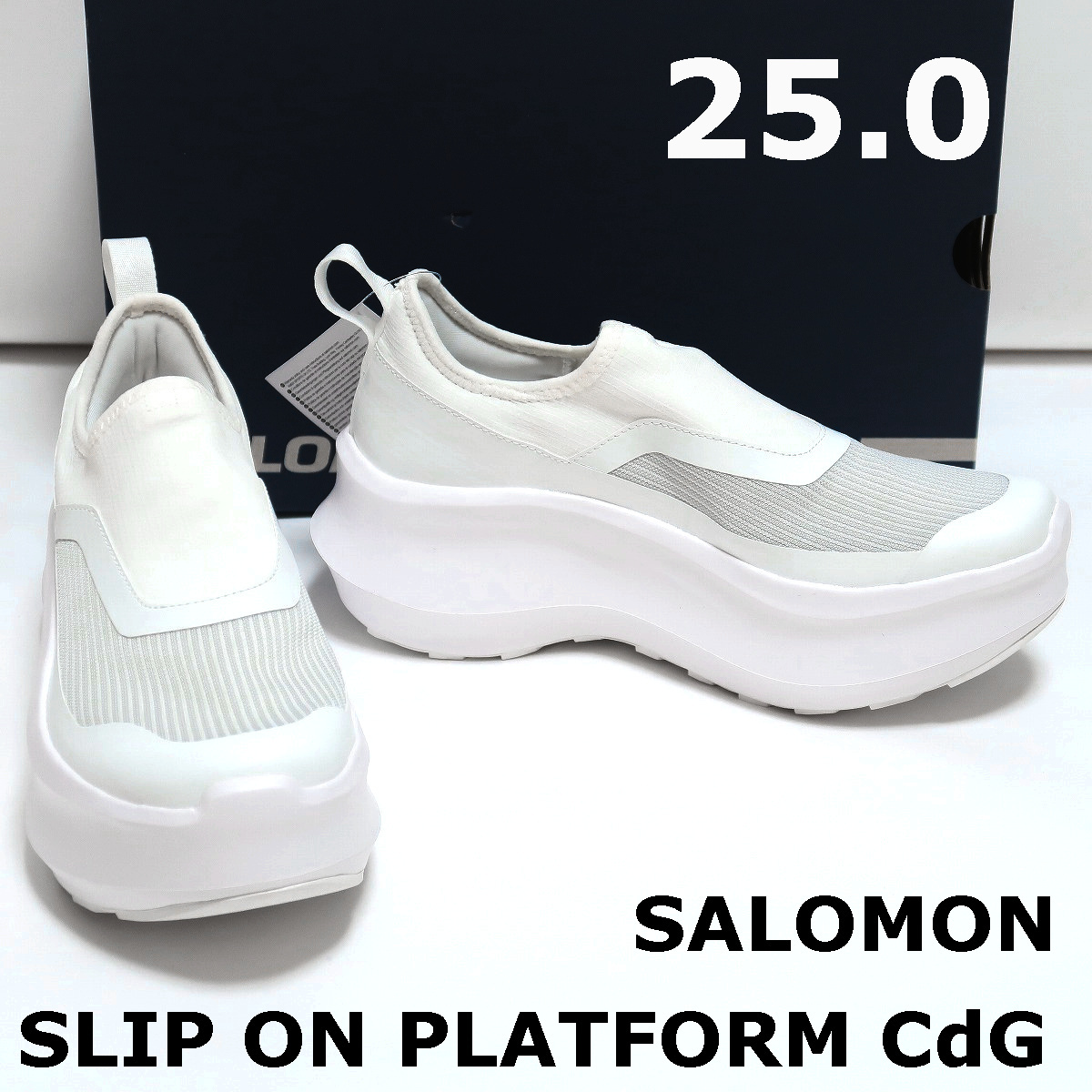 > 25cm 新品 コムデギャルソン サロモン スリッポン 厚底 スニーカー 白 COMME des GARCONS Salomon コラボ 男女兼用