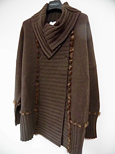 > ●高級Les Copains/レ・コパン/イタリー製/ミンクファー飾/焦茶ニットジャケットコート/サイズ42 L~LX相当