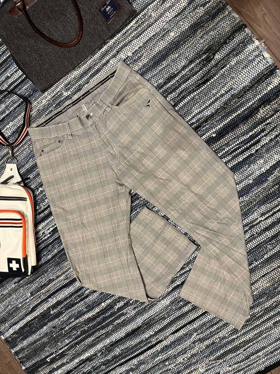 - 人気 TOUR STAGE ツアーステージ 全面豪華ロゴ刺繍 高品質ストレッチ素材 グレンチェック GOLFパンツ sizeW85 ブリヂストンスポーツ(株)製