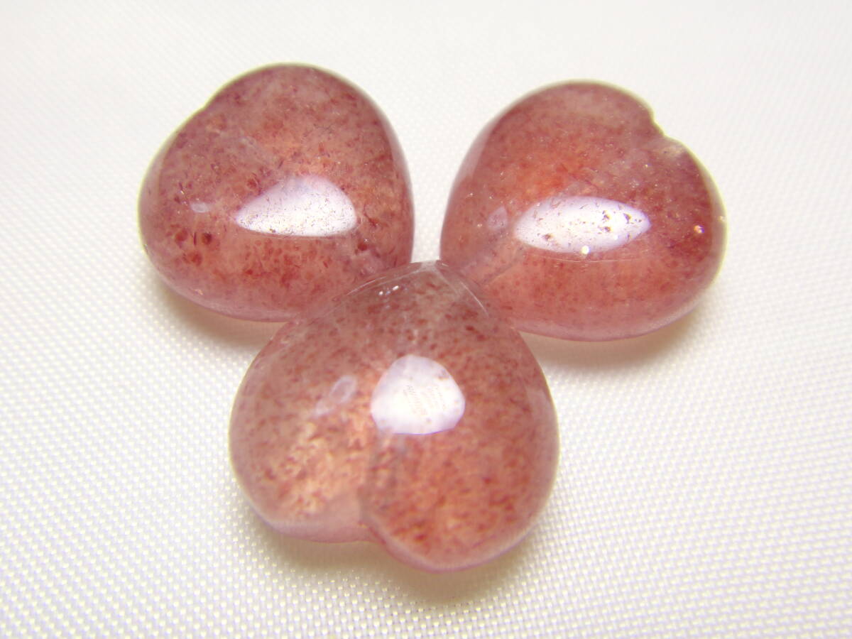 - 天然石 高品質! ストロベリークォーツ 約12㎜ ハート形 タンブル 3個セット Y421