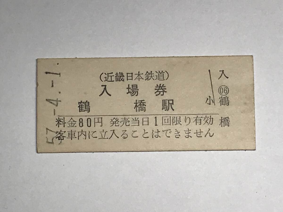 - 昔の切符 きっぷ 硬券 近畿日本鉄道 鶴橋駅発行 鶴橋駅 入場券 料金80円 サイズ:約2.5×約5.8㎝ HF5145 くるり 岸田繁