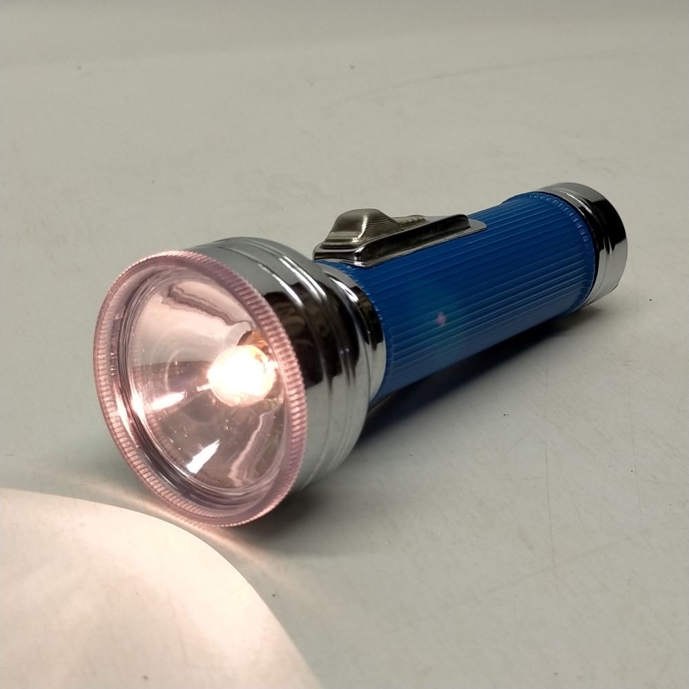 - 昭和 レトロ HITACHI 日立 懐中電灯 青色 ブルー 単2乾電池2個で稼動
