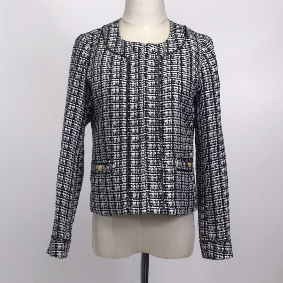 > YZ0467 VIS ビス レディース トップス ジャケット 長袖 フォーマル Mサイズ ブラック 黒 ホワイト 白 エレガント レトロ 春秋 モノトーン