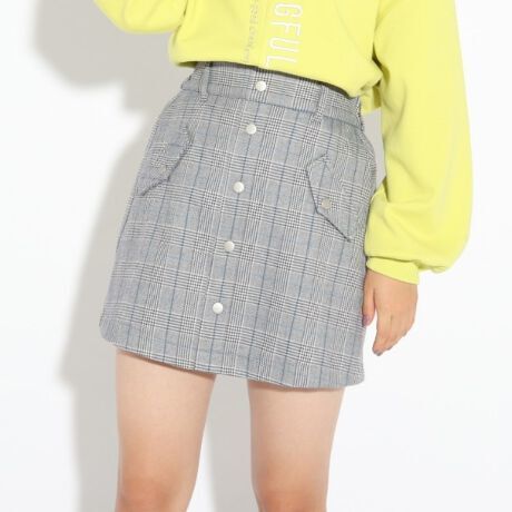 > 新品 PINK-latte【ニコラ掲載商品】あったか起毛チェックスカート グレー(212) 02(165cm) 定価3,850円