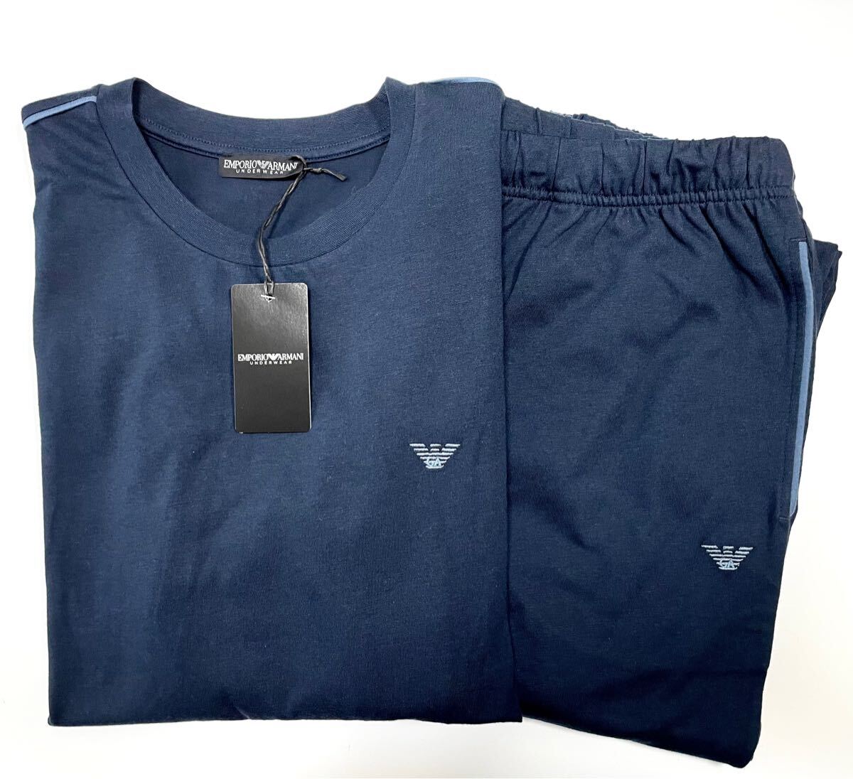 > 新品 エンポリオ アルマーニ ルームウェア ラウンジウェア 長袖長パンツ Mサイズ 紺 アンダーウェア 上下セット パジャマ GG