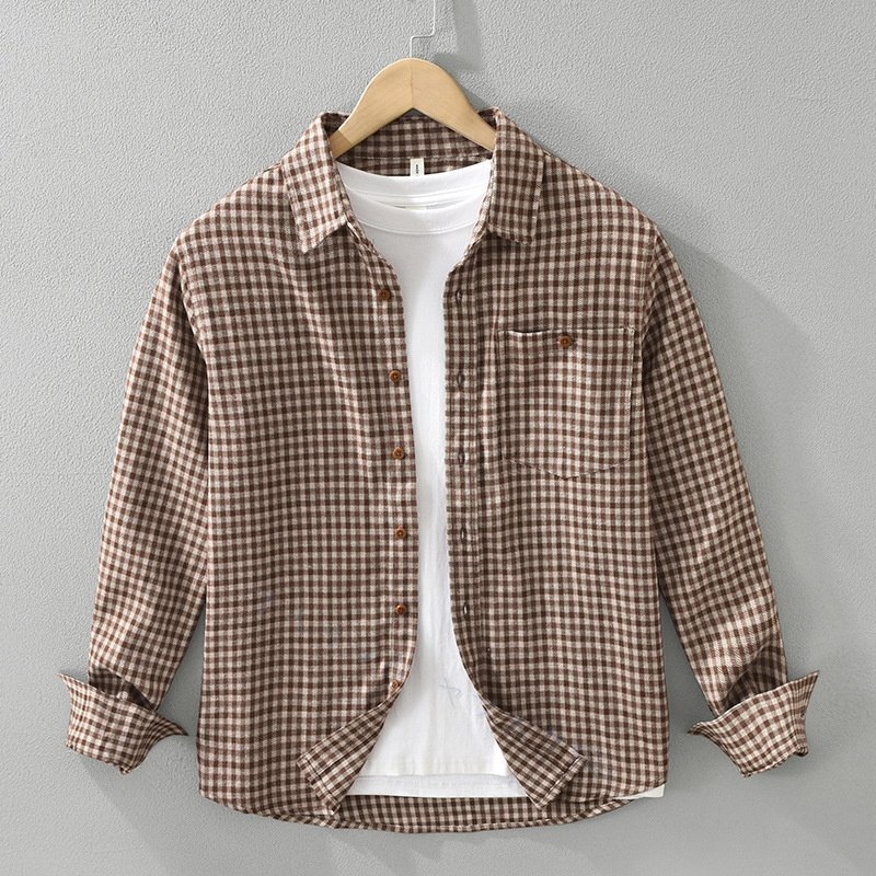 - ☆新品 長袖シャツ シャツ カジュアルシャツ シャツジャケット チェックシャツ トップス 春秋 メンズ 珈琲色 XL