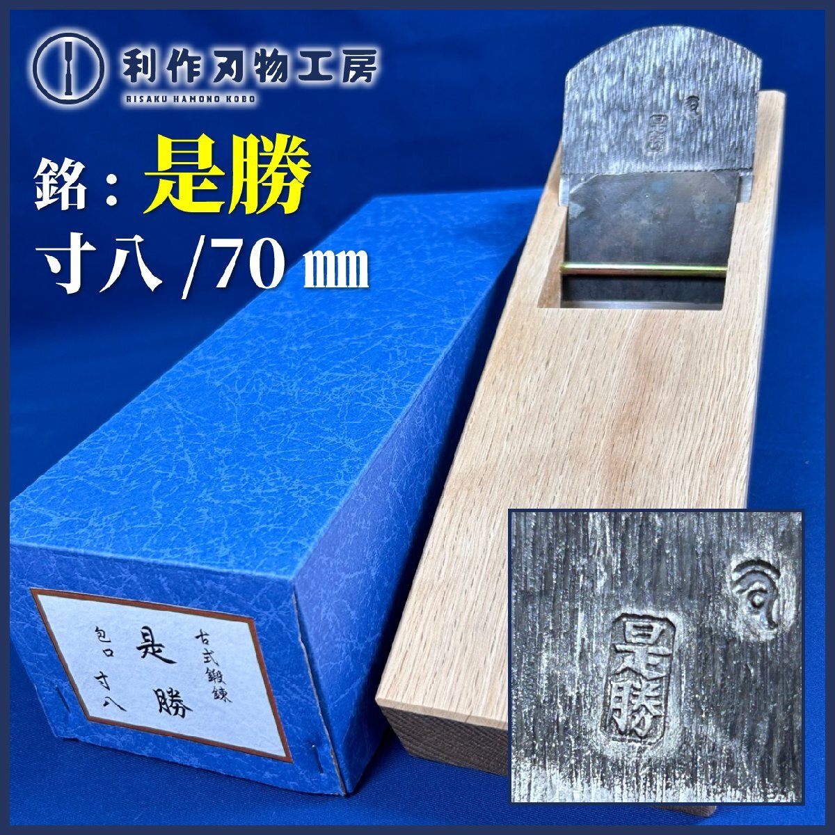 - ★SALE★【年代物鉋】寸八/70mm鉋『銘:是勝(問屋銘鉋)』※小吉屋作/白樫台(包口)使用 ※古式鍛錬【中古/未使用品】※傷・汚れあり