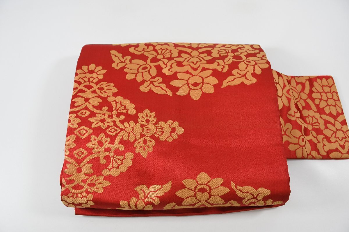 - 名古屋帯 アンティーク 唐花文様 葉 帯丈344cm ★着物屋 ne-12843 桜庭呉服店