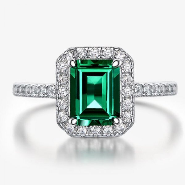 - 《最初の入札者様は開始価格で購入可能》女性用スターリングシルバーのエメラルド婚約指輪、6x8mm、米国サイズ5(日本の9号相当)