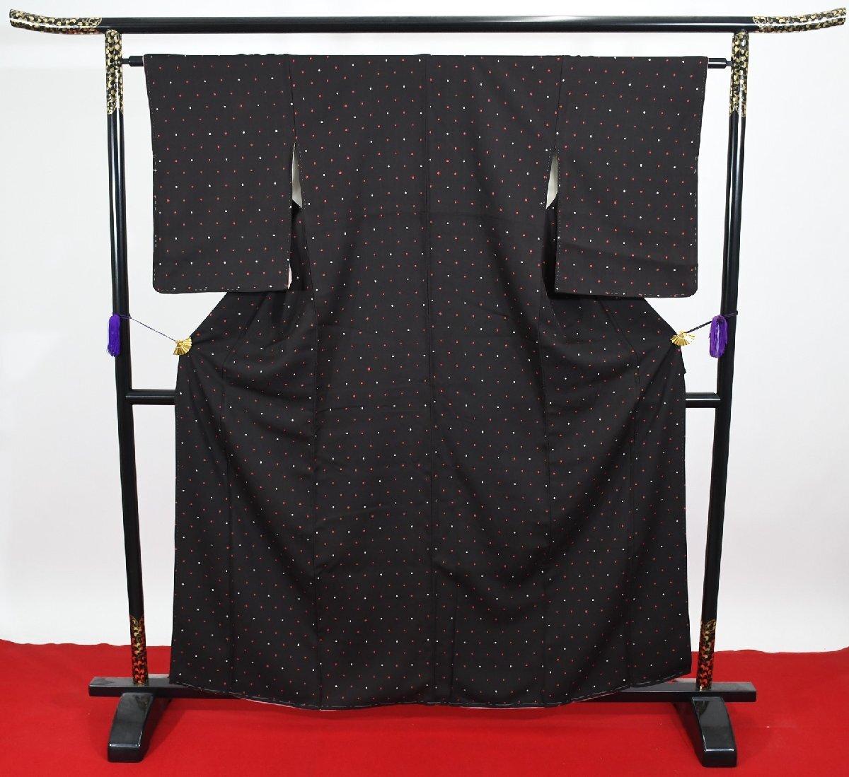 > 小紋 着物 袷 ドット 葉菱文様 身丈154cm 裄丈63cm ★ kb-6154 桜庭呉服店