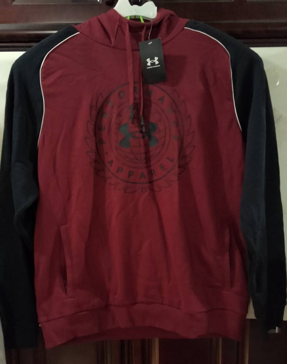 - 新品 アンダーアーマー パーカー 2XL 胸囲140 3XL位? えんじ×黒