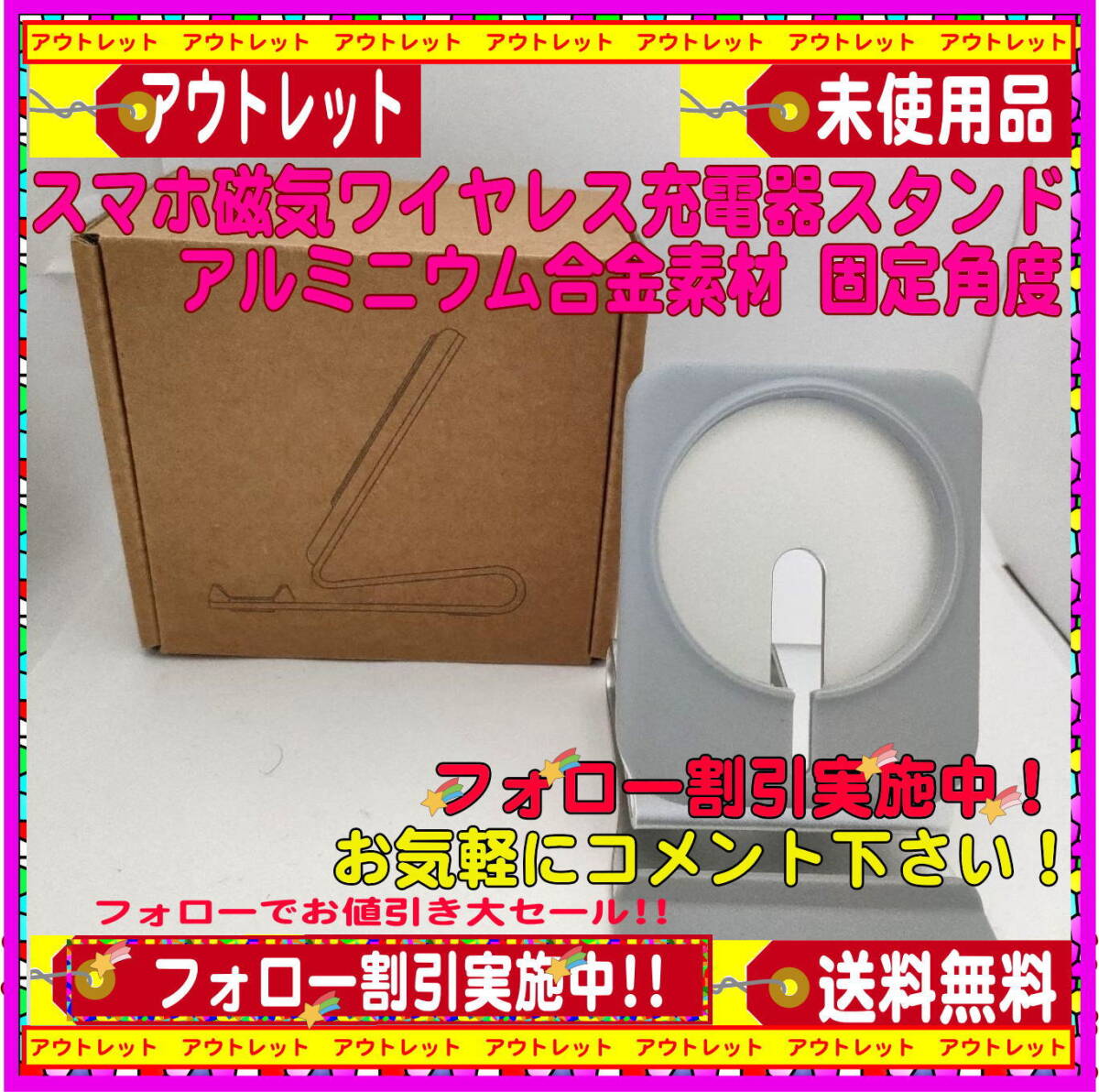 - 新品スマホ磁気ワイヤレス充電器スタンド アルミニウム合金素材 固定角度 送料無料・匿名配送