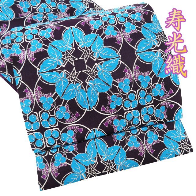 > 特選 袋帯 中古 リサイクル 正絹 仕立て上がり 全通 皇室献上本舗謹製 作家物 落款 寿光織 欧州葡萄文 濃色 天色 きもの北條 A1112-12