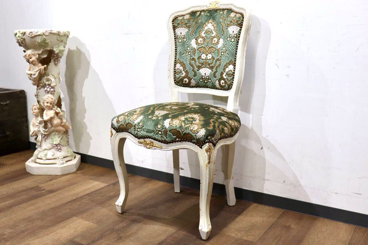> GMHS421B○西洋 アンティーク ダイニングチェア 椅子 猫脚 鋲打 彫刻 ファブリック ロココ調 姫系 シャビーシック エレガント クラシック
