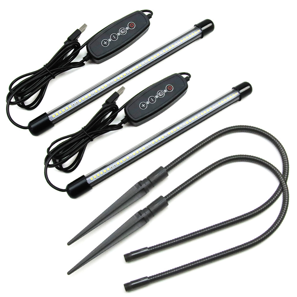- 【2個セット】LED植物育成ライト 屋内植物ライト 差し込みタイプ ソフトチューブ付き USB給電 定時機能6段階調光360°調整可能 1ヘッド白光