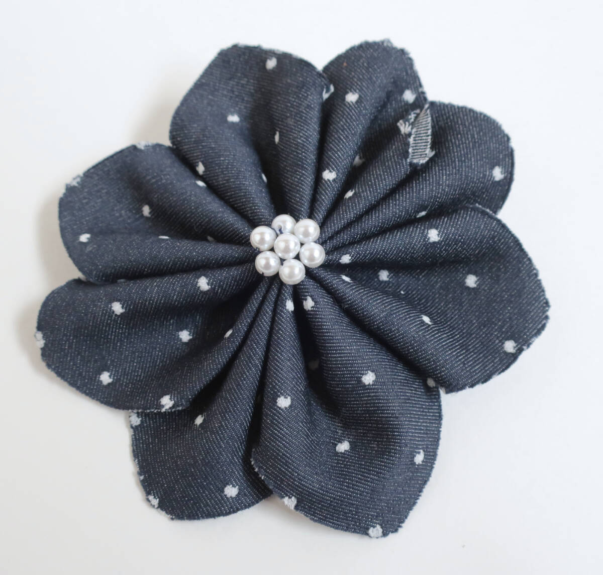- コサージュ 濃紺 水玉柄 パール 直径約11cm