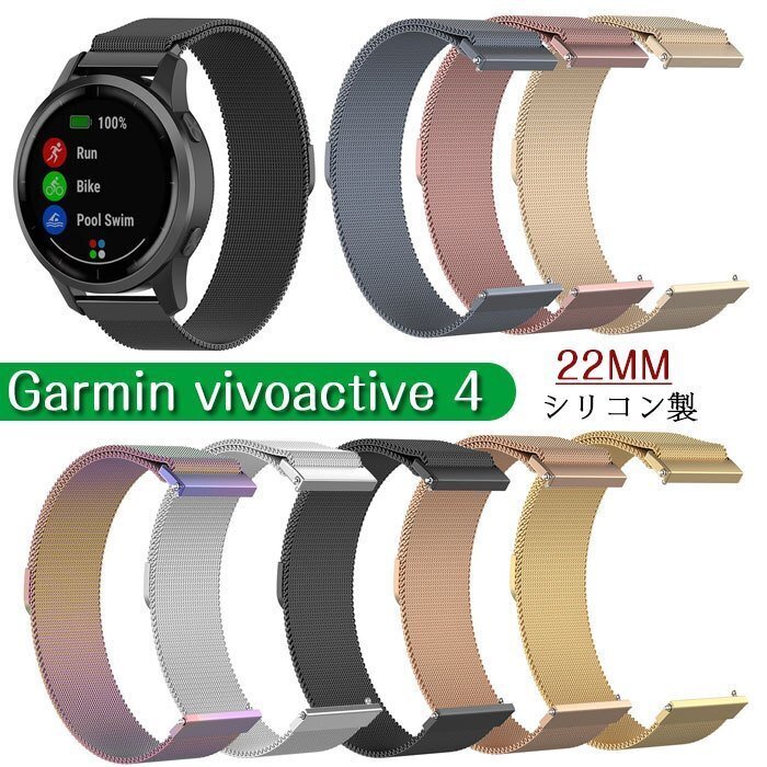 - GARMIN vivoactive4 用 バンド 対応 時計バンド 交換バンド ステンレス製金属ベルト ビジネス風 通気穴設計 マグネット付き ☆8色DLY853