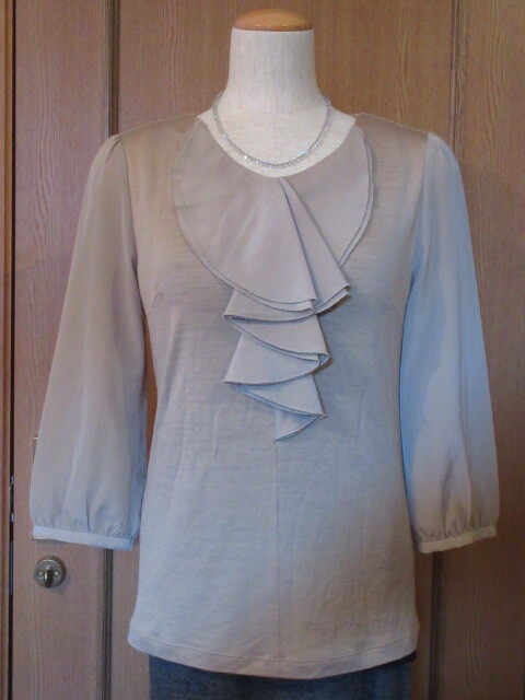 > N)訳有■ブランド品■【MICHEL KLEIN ミッシェルクライン】■手洗い可/毛100■フリル&お袖ポリの異素材コラボ!■お洒落なカットソー
