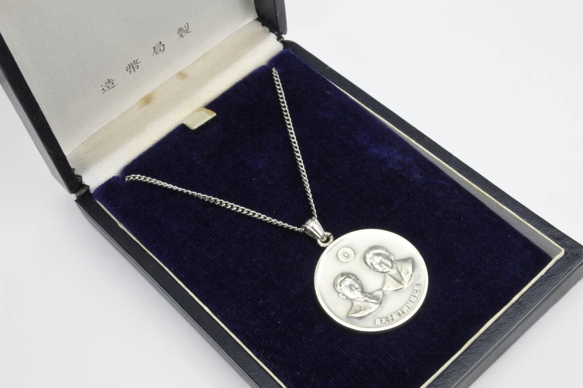 > 皇室特別発行品* 昭和34年(1959年)上皇陛下(当時皇太子殿下)御結婚記念 銀製ベンダント ネックレス 永遠の御家宝