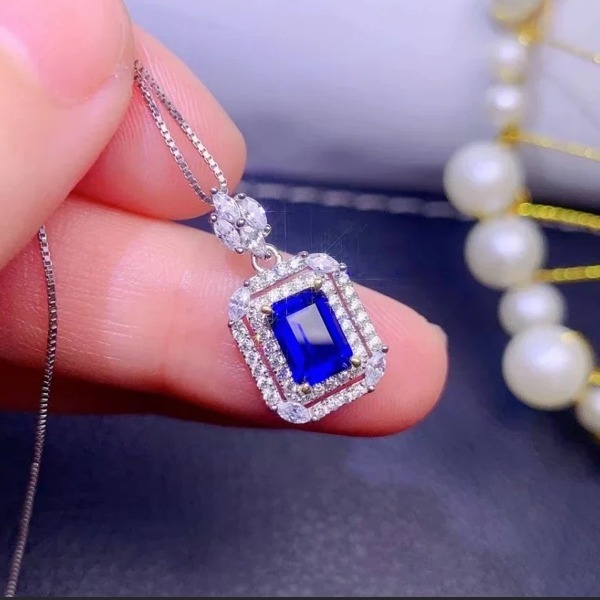- 【証明書付き】女性用ナチュラルサファイアペンダント付きネックレス、7×9mm、最初の入札者様は開始価格で購入可能