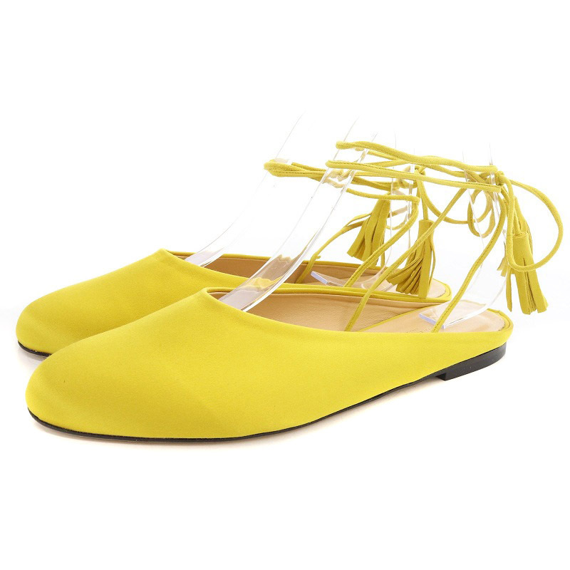 - ジェイ&エムデヴィッドソン J&M Davidson SATIN フラット シューズ レースアップシューズ 38 24cm 黄色 イエロー /SR15 レディース