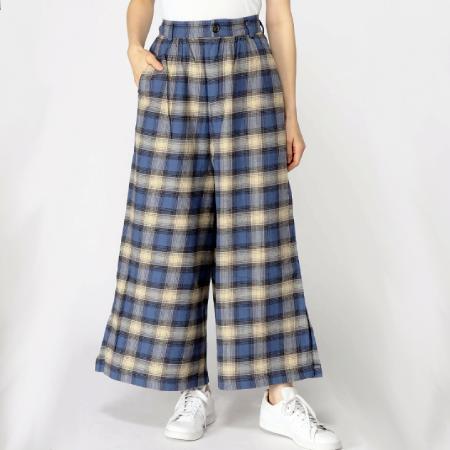 - RNA-N チェック イージー ワイド ギャザー パンツ M ブルー/青 起毛 ウール混 ワイドシルエット ボリューム 幅広