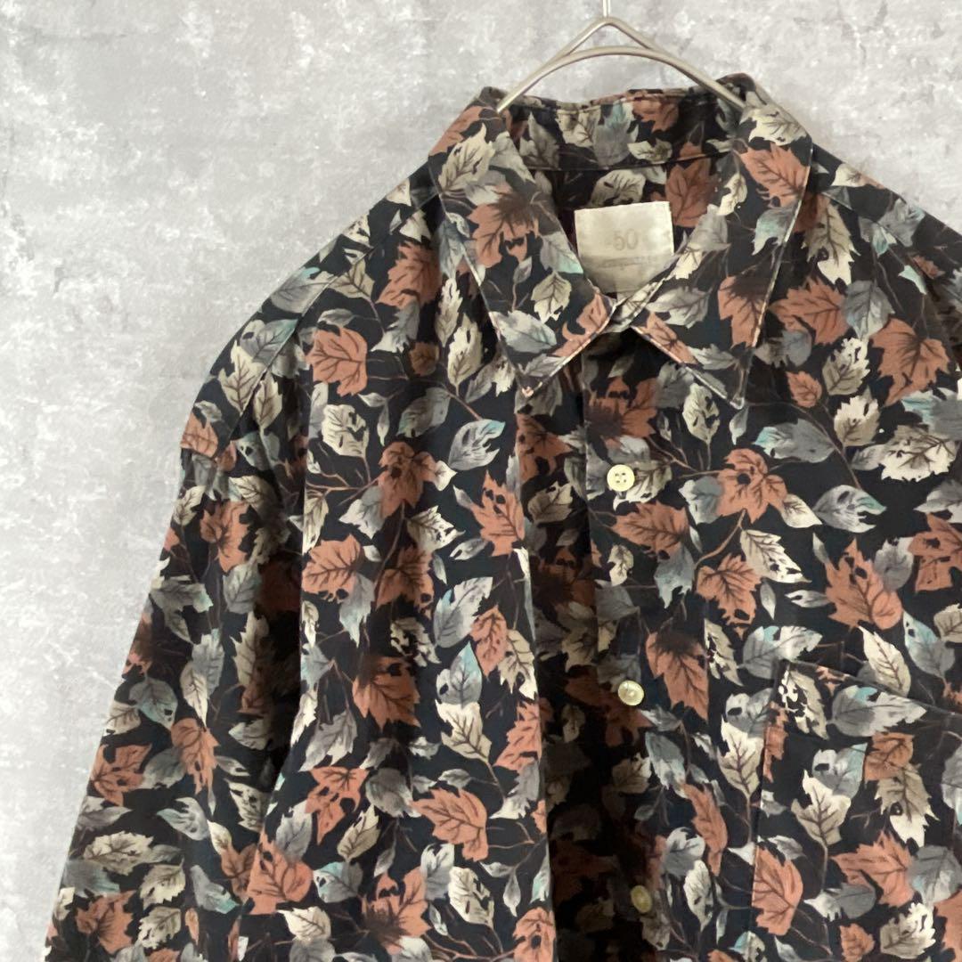 - 古着 リーフ柄 ツリー柄シャツ 長袖 Mメンズ F2