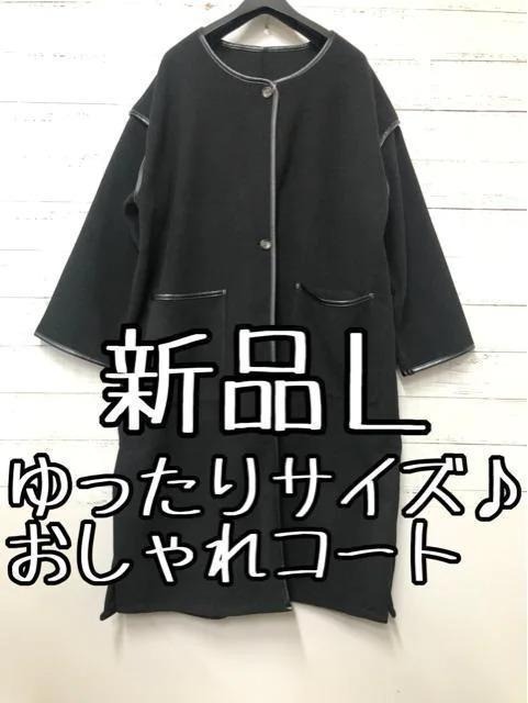 - 新品☆L♪黒系♪ゆったりガウン風おしゃれなノーカラーロングコート☆☆e394