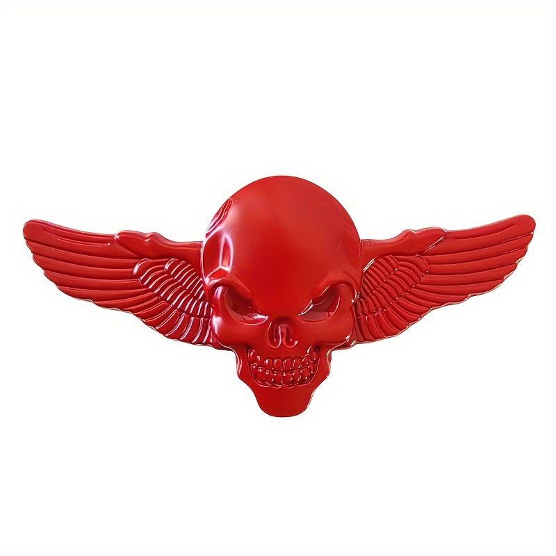 - エンブレム どくろ がいこつ 羽 ステッカー 金属 レッド 赤 11cm 車外アクセサリー 車用 ロゴ おしゃれ かっこいい 外装 シール t3525