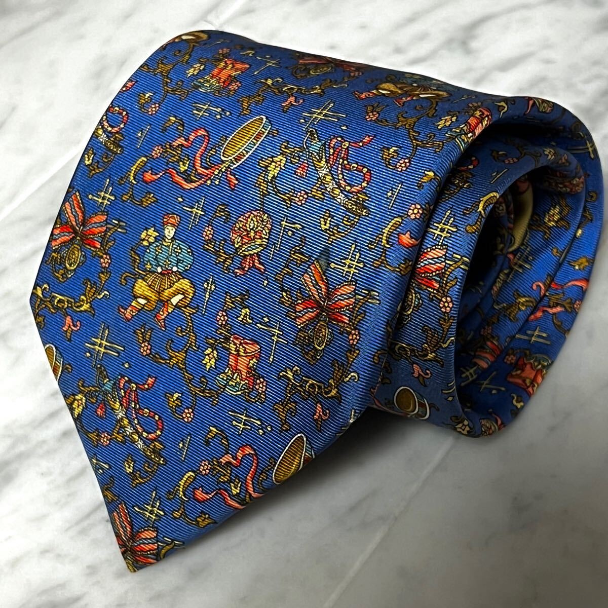 - 770円~ Ferragamo ネクタイ ブルー マルチカラー 総柄 (B4)